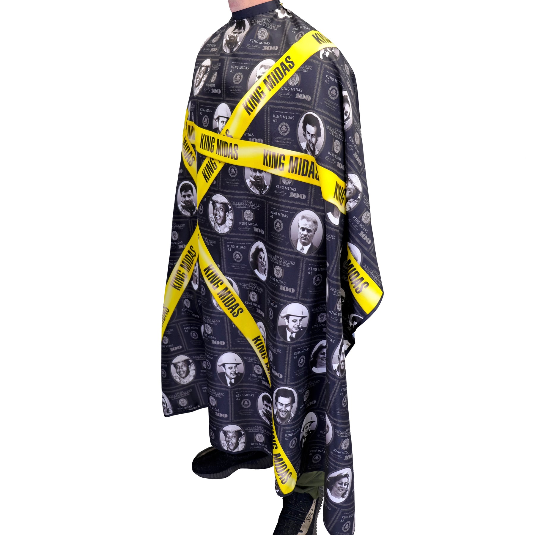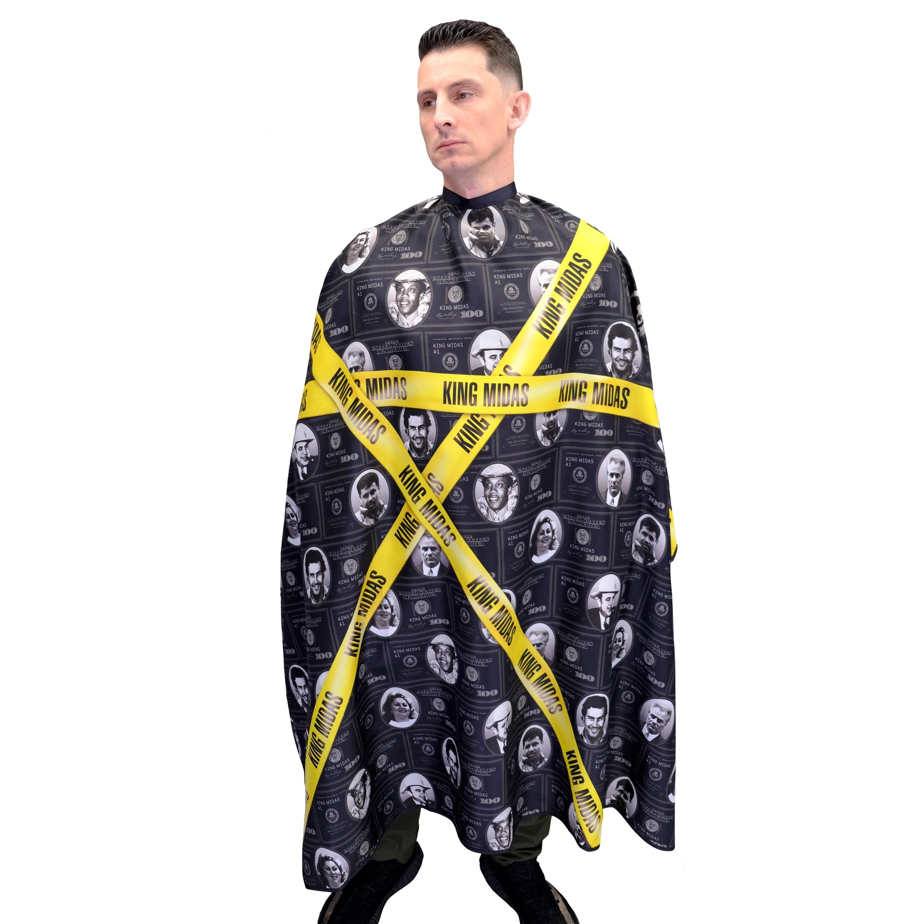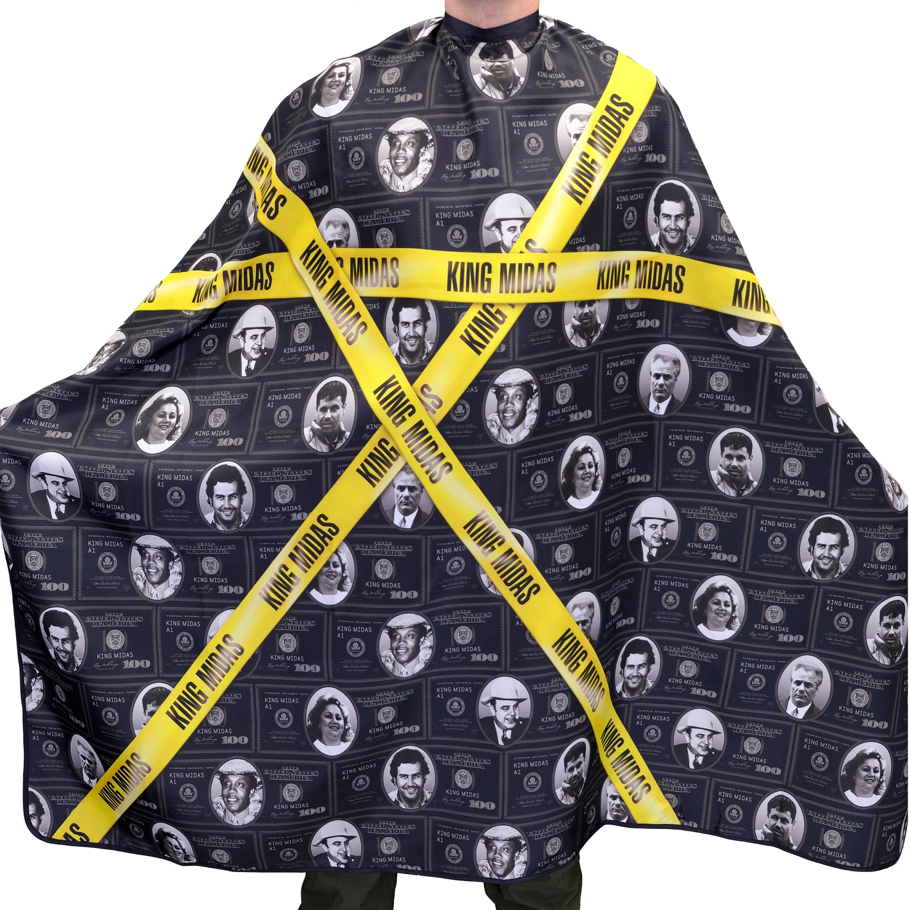 You have never seen a more bad a** barber cape in your life. This one is for all the barbers who grind hard in the barbershop like a true boss. Taking extra care of clients, charging their worth, and making that paper. All to make sure their dreams come true. Say hello to the bad guys who love those bands. The King Midas barber cape includes all of the necessary features that provide the ultimate experience for you and your client. We use our own barber experience to bring you a cape that is large enough to completely cover your clients, is hair and water proof, fits everyone, and feels and looks as royal as our name.