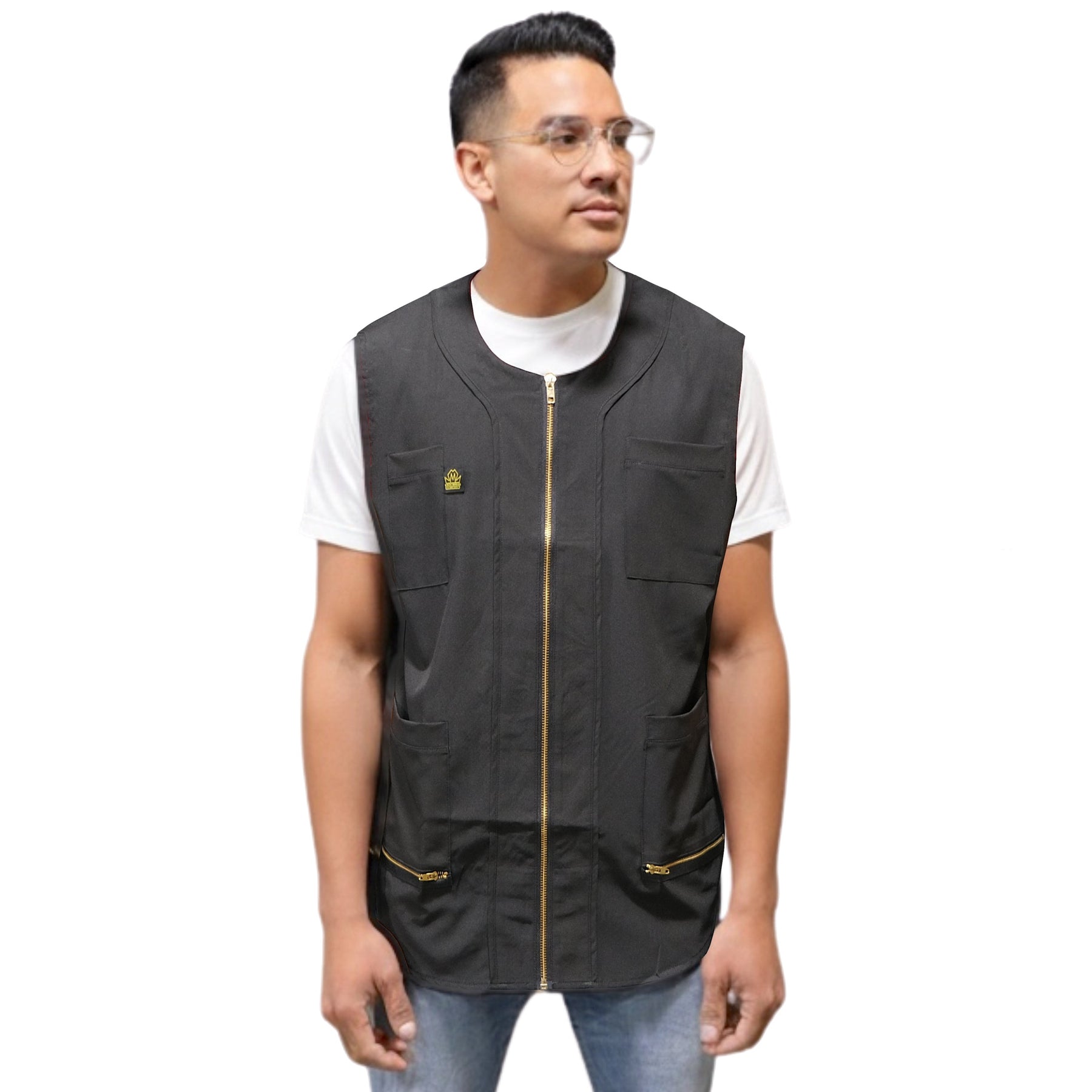 The King Midas Professional Barber Vest  Is you ultimate companion for effortless hair cutting & styling! Are you tired of struggling with heavy and uncomfortable, or paper thin barber vests? Look no further! The King Midas Professional Hair Barber Vest is here to change that.  Crafted with precision and designed for the modern hair professional, this vest combines functionality, durability, and style in one seamless package. Say goodbye to cheap plastic or rusted zippers. Our barber vest boasts rust-free solid zippers that stand the test of time, ensuring your investment lasts for years. Crafted with meticulous attention to detail, this sleeveless vest is built to withstand any busy barbershop.