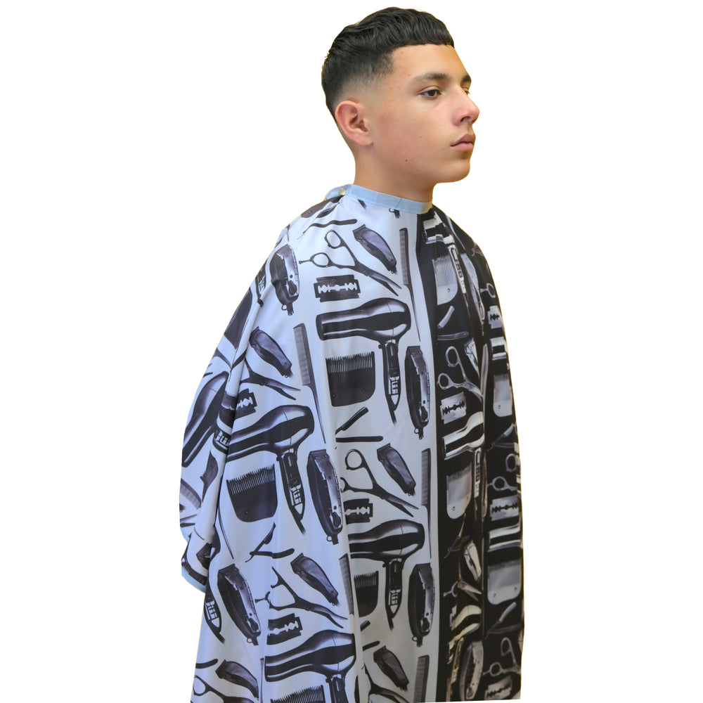 King Midas splits his treasure in half to create the Moses Barber Cape, a unique cutting cape masterpiece. This King Midas barber cape is anti static, hair and water proof. This unique design styling cape fits men, women and small children. The King Midas barber cape is made of long lasting and ultra lightweight soft material. This hair cutting cape is itch free and skin friendly and gives the client a relaxed and mess free barbershop experience. This barber cape can be cleaned in a washing machine, you can wipe clean it and even dry clean it. Our barber cape is anti static and water proof. The King Midas hair cutting cape provides total coverage to the client.